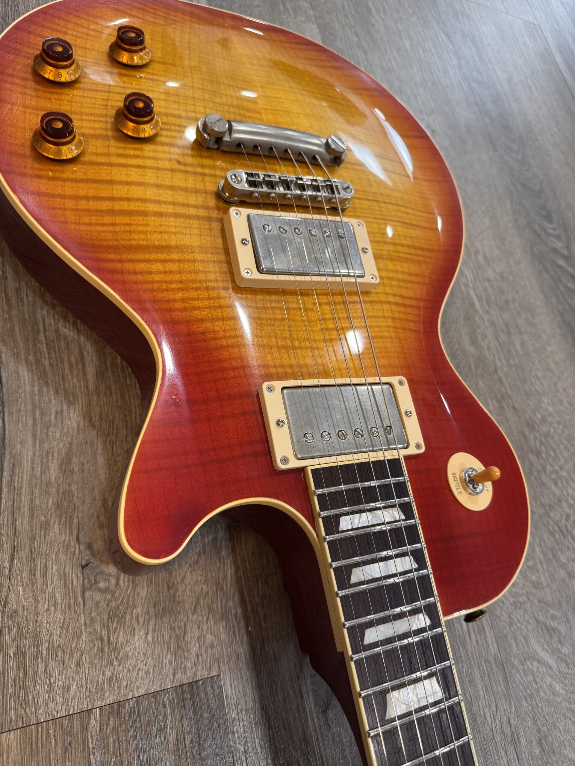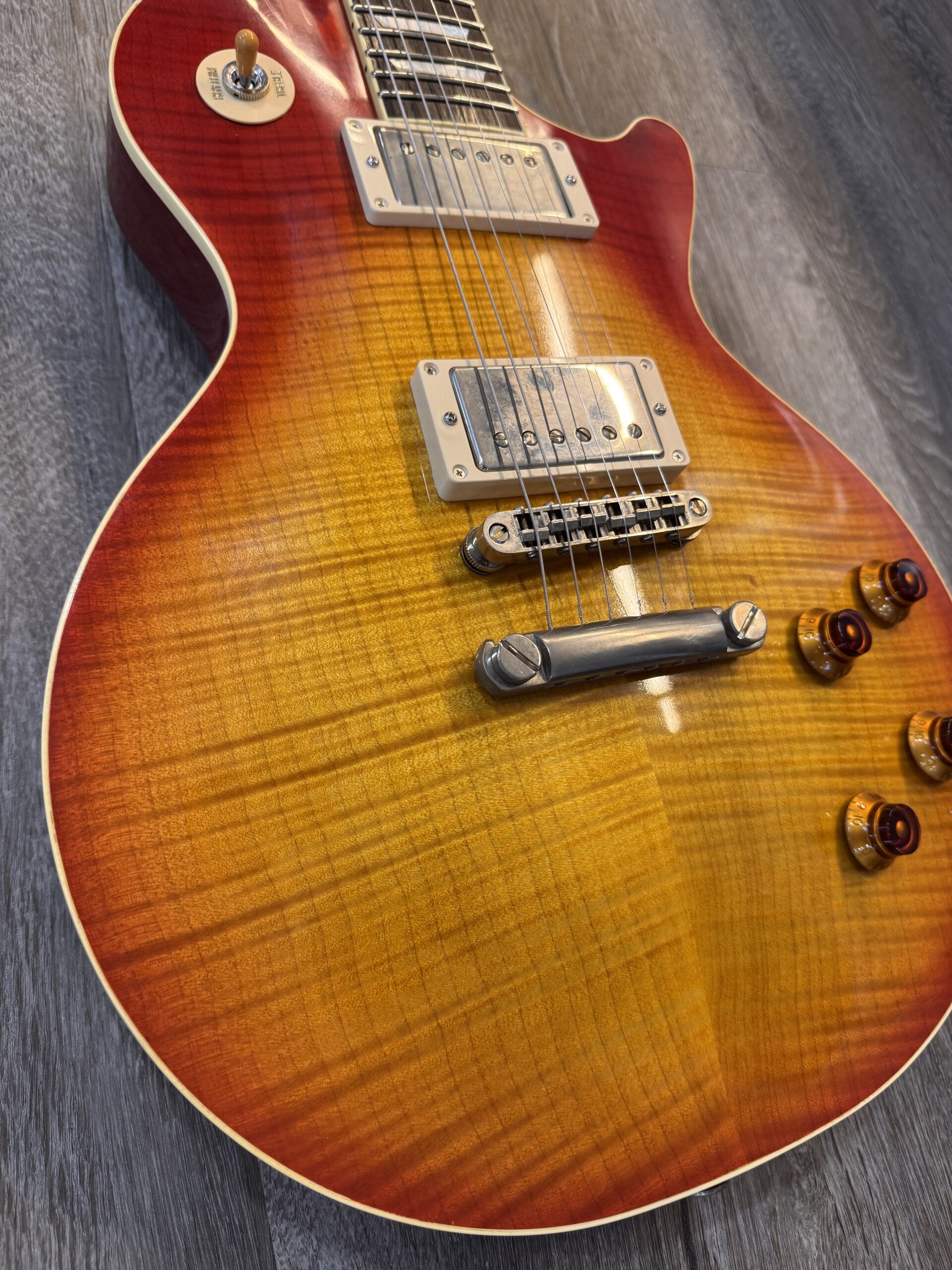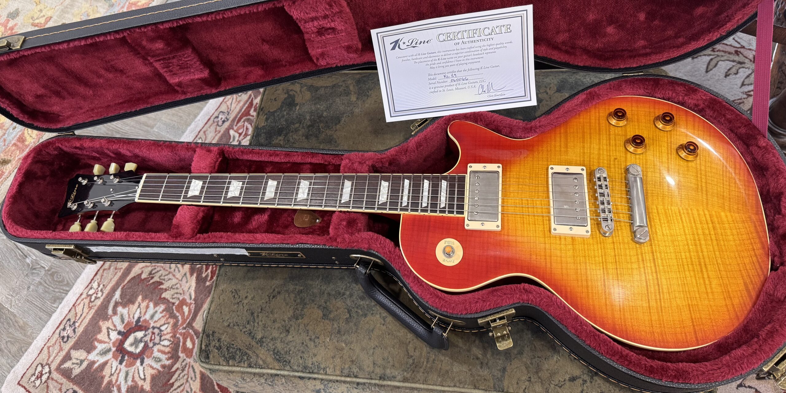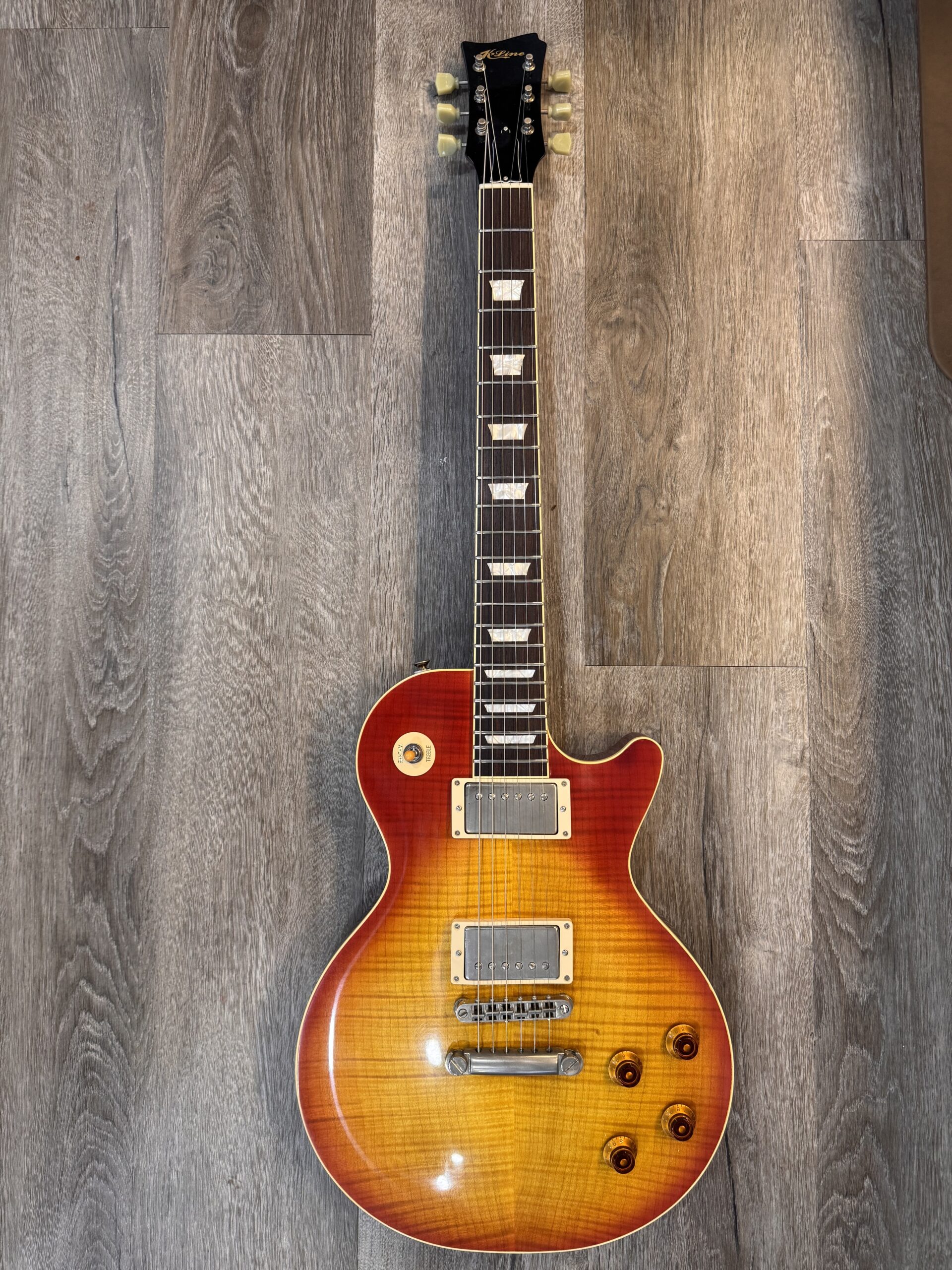The carve top version of the KL Series has been a long time coming. Each guitar is handcrafted as a one-off as is with every K-Line Guitar using only the best woods. The pickups are wound here in house to replicate the best of the real PAF pickups that we have been fortunate to get our hands on. A few changes have been made to make sure that the guitar will perform for years to come. We have decided to ditch the old ABR style bridge with a more sturdy Nashville style. This eliminates much of the buzzes and rattles and will not begin to lean like the old guitars could. We did not intend to re-invent the wheel, just put a better tire on it.